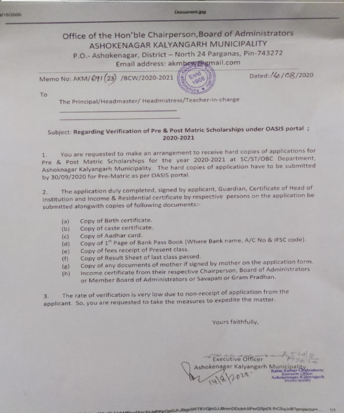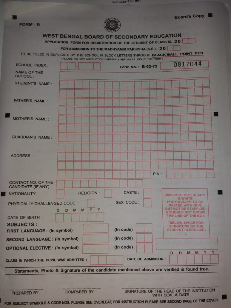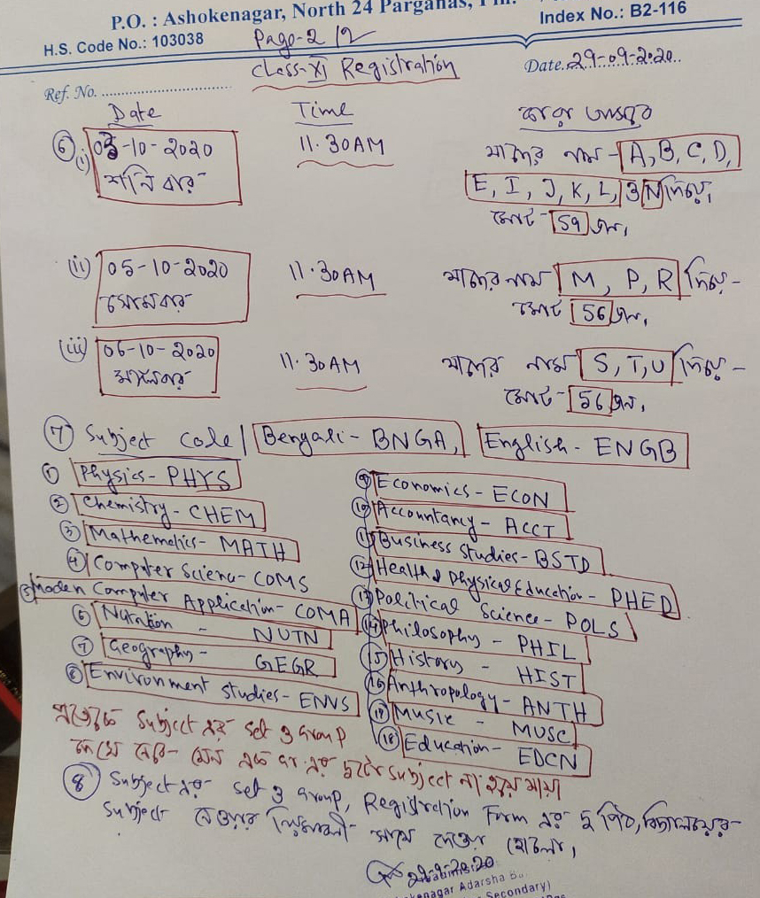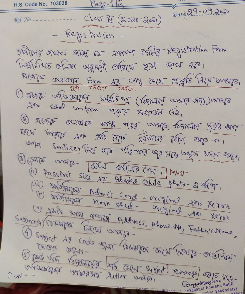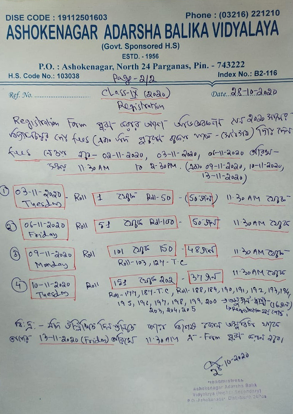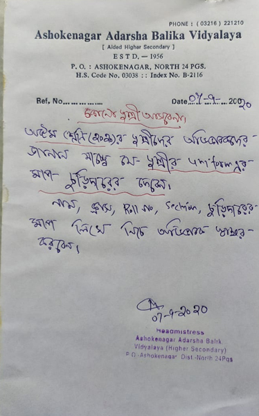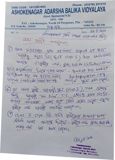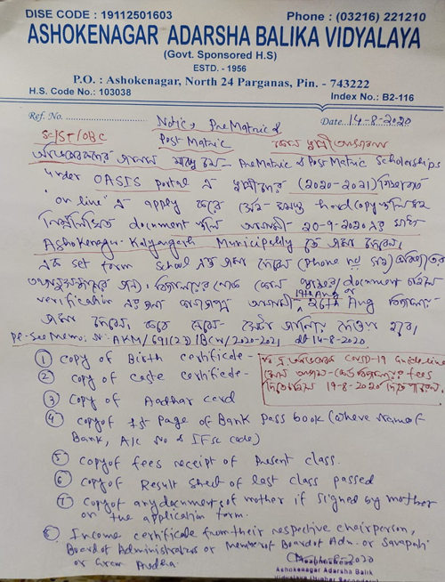 i) পিতা/মাতা ছাত্রী Original মাধ্যমিকের এডমিট কার্ড এবং রেজিস্ট্রেশন সার্টিফিকেট নিয়ে আসবেন।
