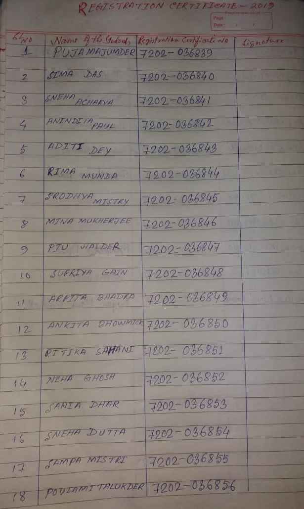 i) ছাত্রী / অভিভাবক আসলে রেজিস্ট্রেশন সার্টিফিকেট আসবে ৷